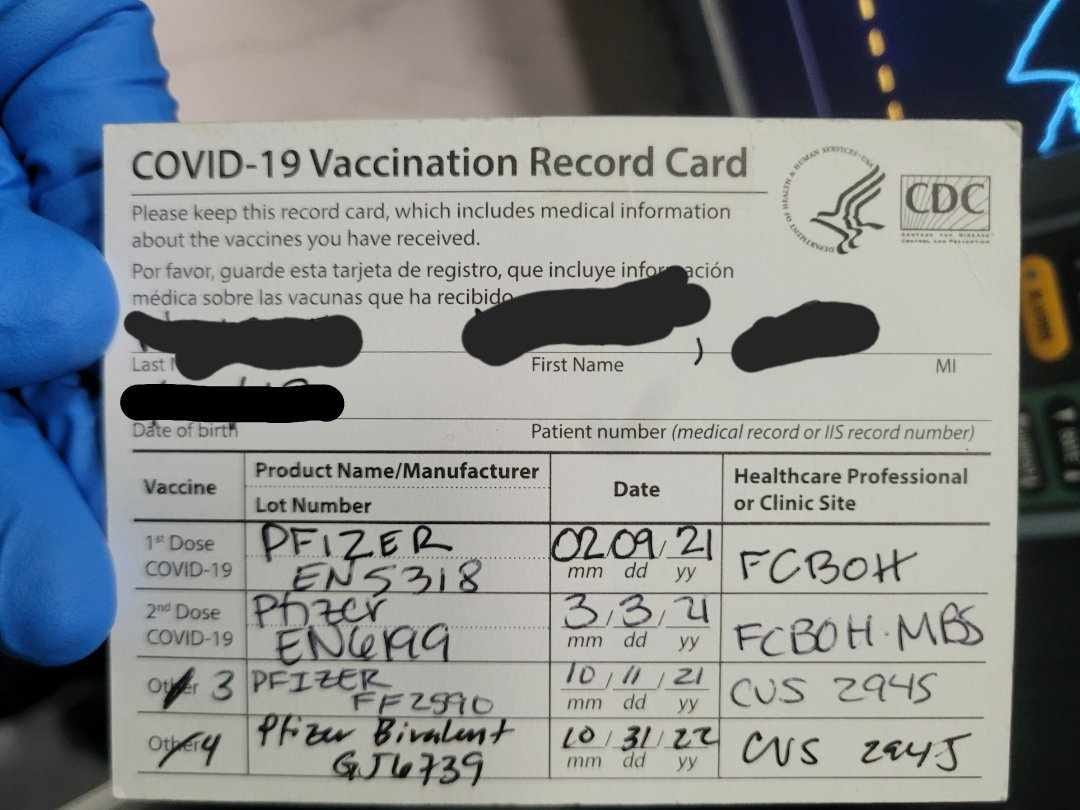 Take a look at her vaccine card. Notice the last entry... Bivalent flu/covid jab on 10/31/2022, just prior to the onset of her debilitating neurologic disease.